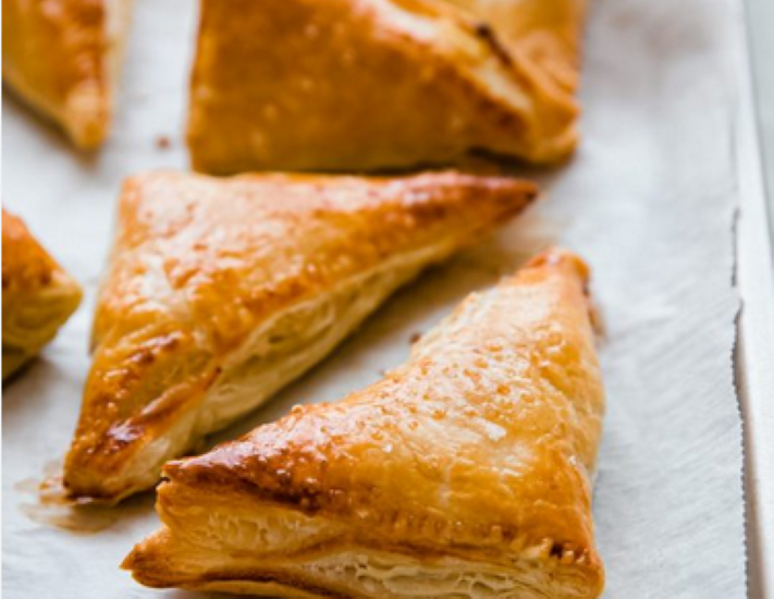 Puff pastry stuffed with spicy minced chicken.